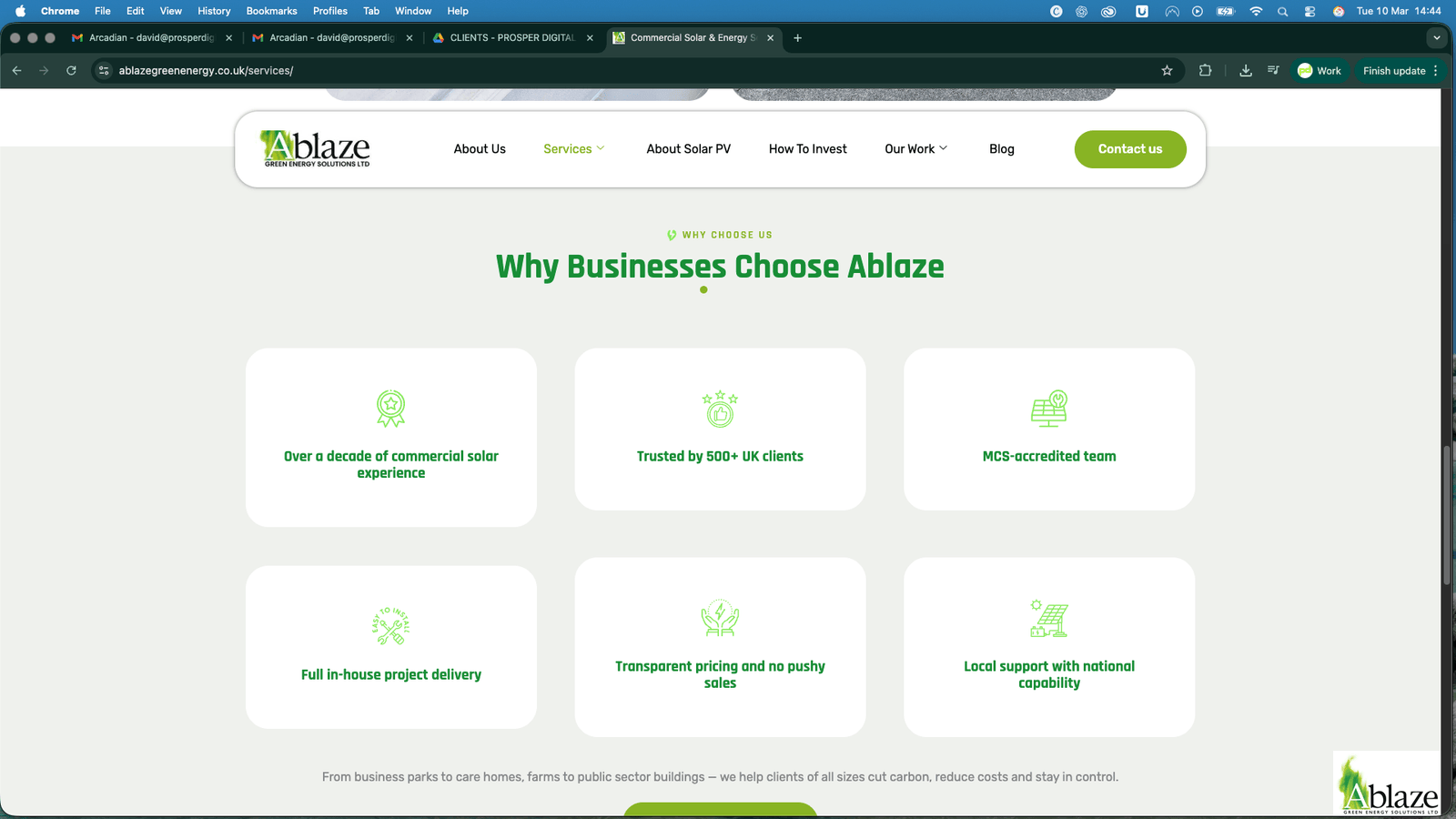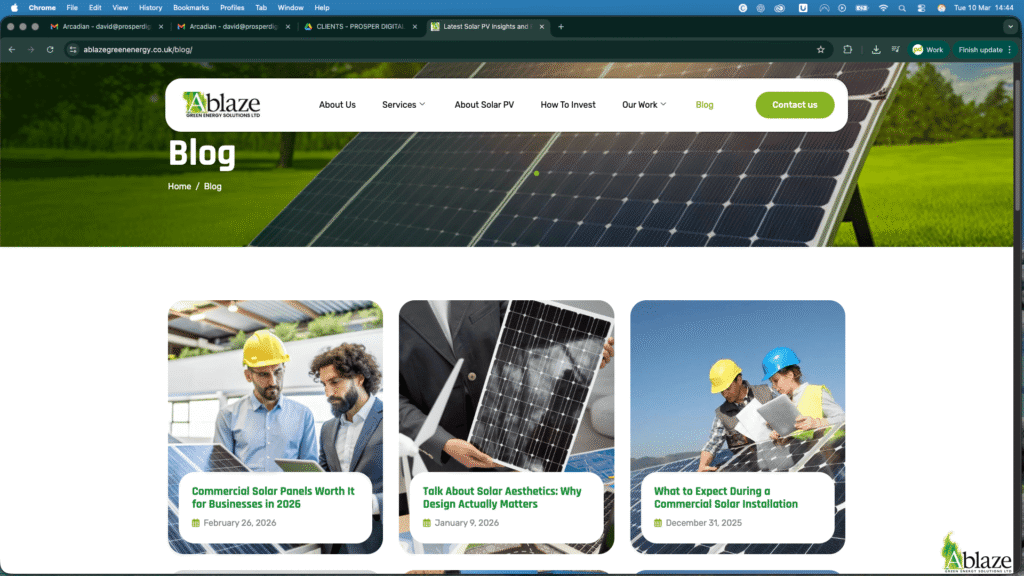 Prosper Digital redesigned the Ablaze Green Energy website to create a professional platform capable of supporting both enquiries and long-term SEO growth.