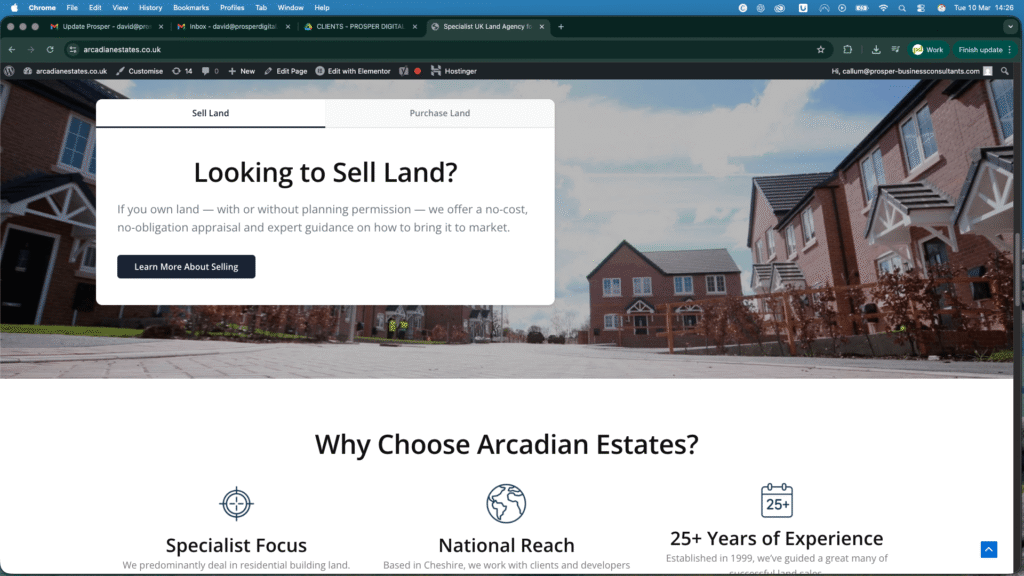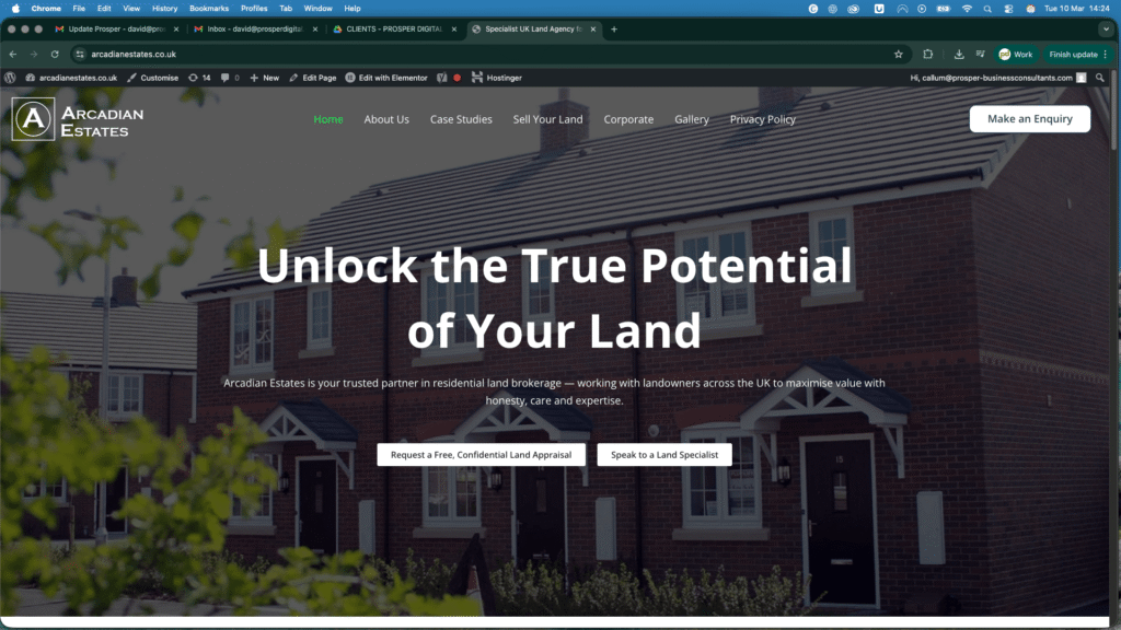 Prosper Digital redesigned the Arcadian Estates website to create a modern, professional platform capable of generating enquiries from landowners across the UK.