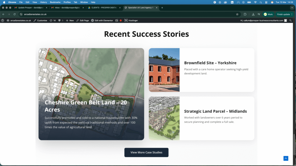 Working alongside Arcadian Estates required a flexible approach due to the demands of the client’s busy schedule. Prosper Digital worked closely with the team to ensure the transition from their previous provider was handled smoothly with minimal disruption.