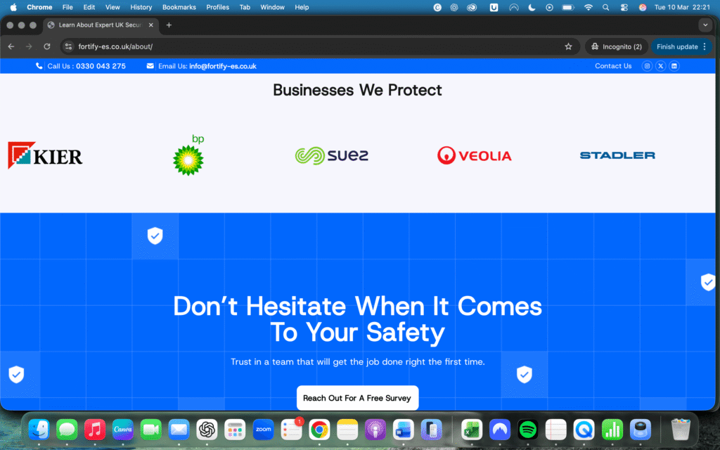 Following the launch of the website and implementation of the SEO strategy, Fortify ES now benefits from a strong digital presence supporting its growth across the North East.