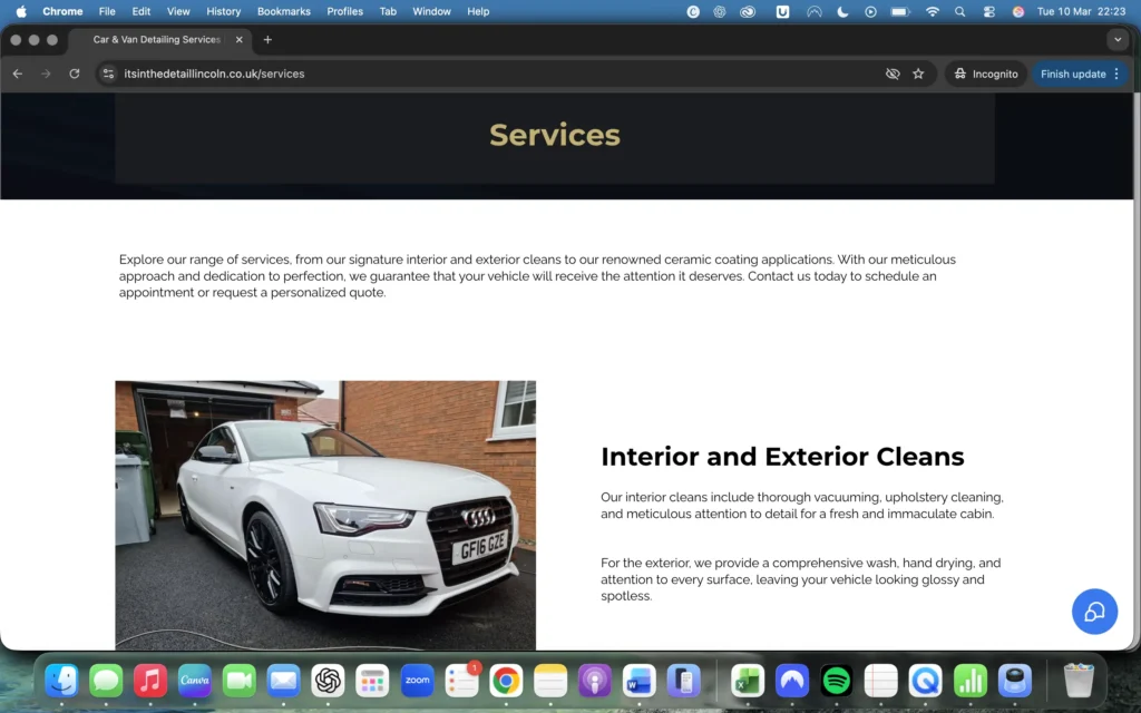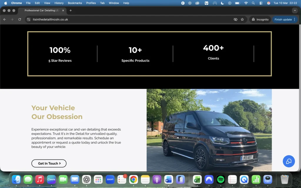 Following the launch of the website, It’s in the Detail now benefits from a professional digital presence that helps attract new customers and showcase the quality of its work.
