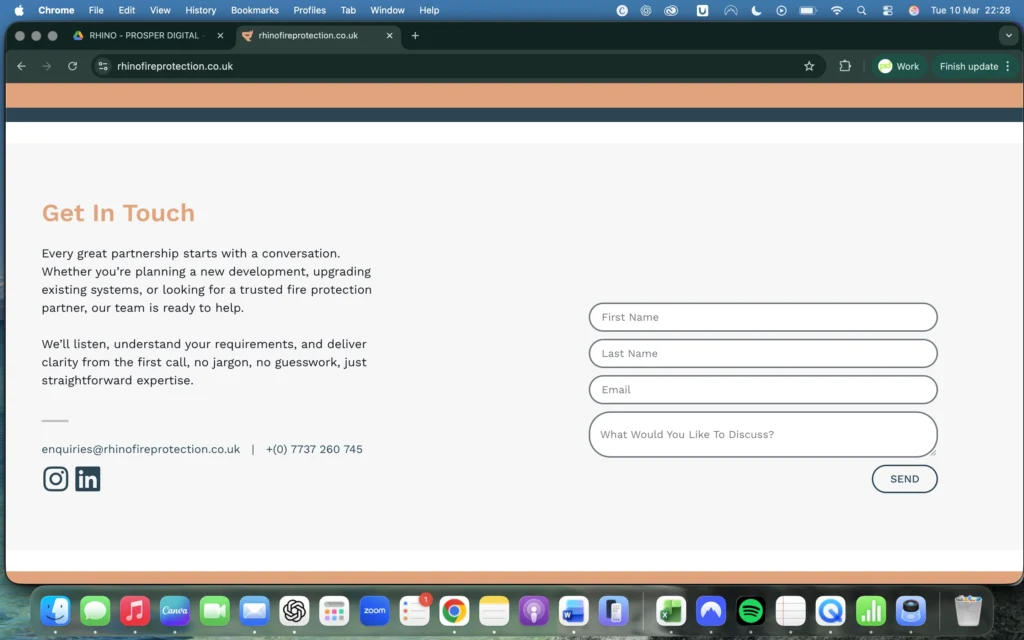 Following the launch of the website, Rhino Fire Protection now benefits from a professional online presence that clearly communicates its services and supports enquiries.